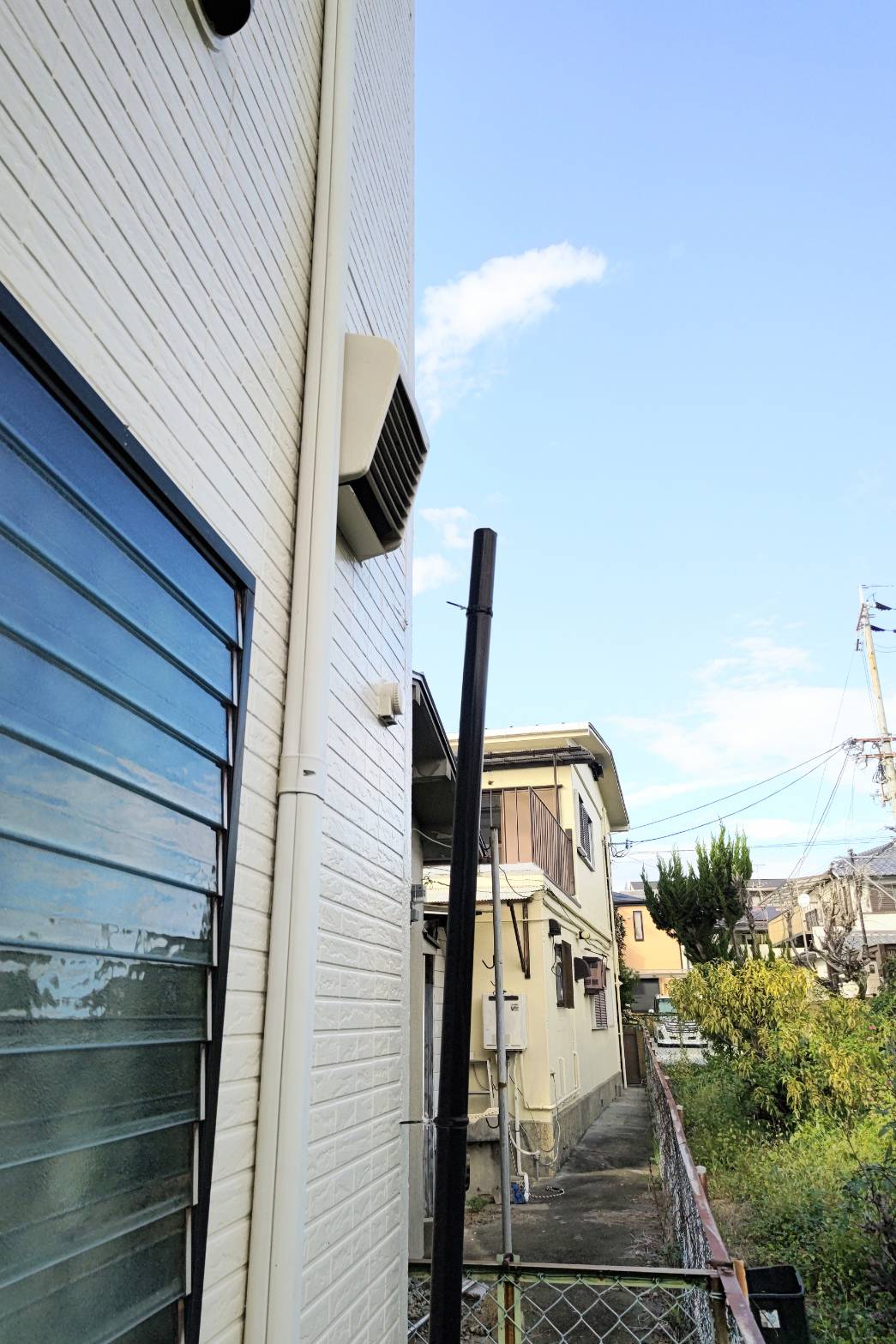大阪府箕面市での突風による雨樋破損修理工事では、3階建て住宅の雨樋パイプが飛散するという緊急事態に対応いたしました。