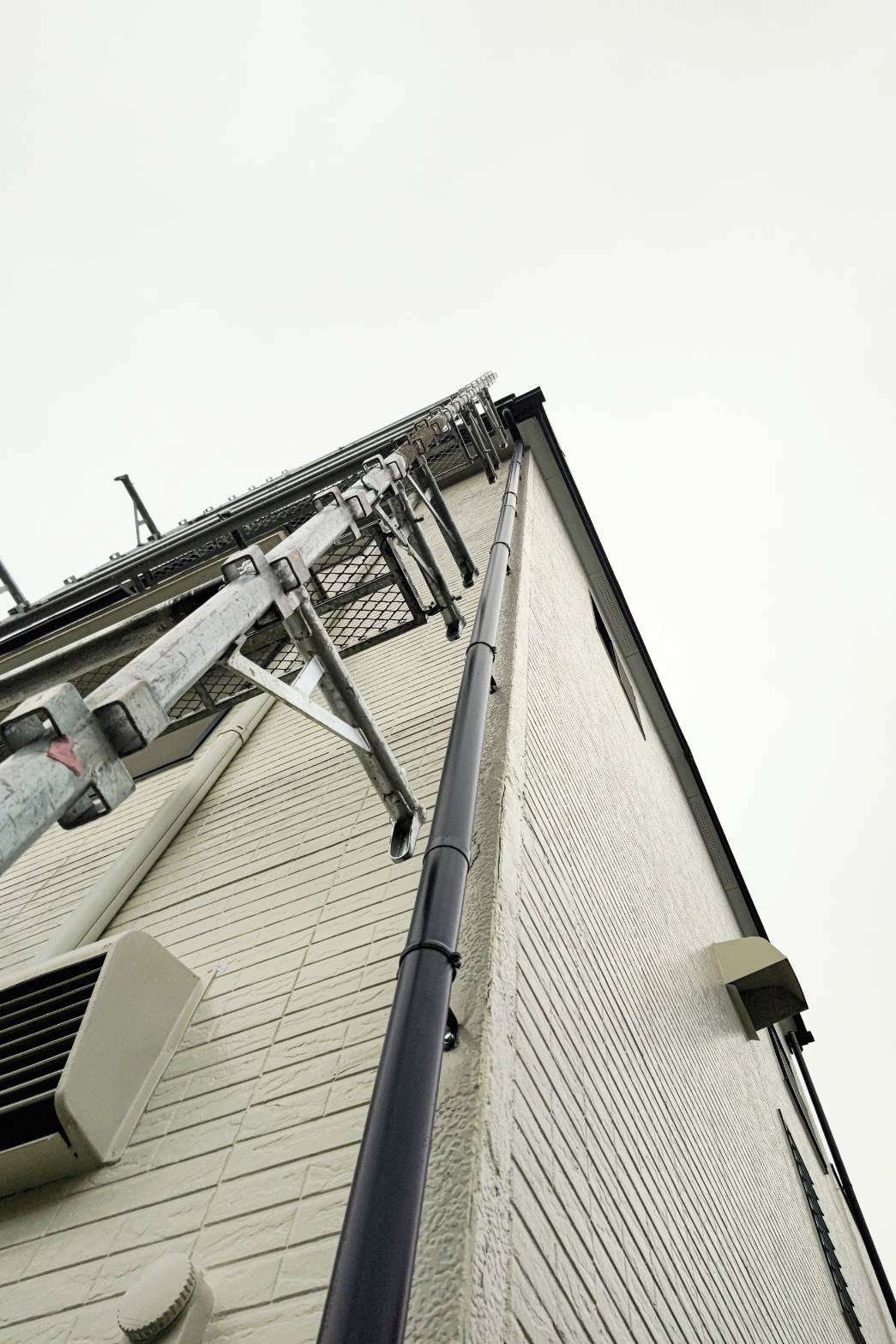 今回の施工は、3階建て住宅の雨樋が突風で外れて飛散してしまったという緊急性の高い案件でした。